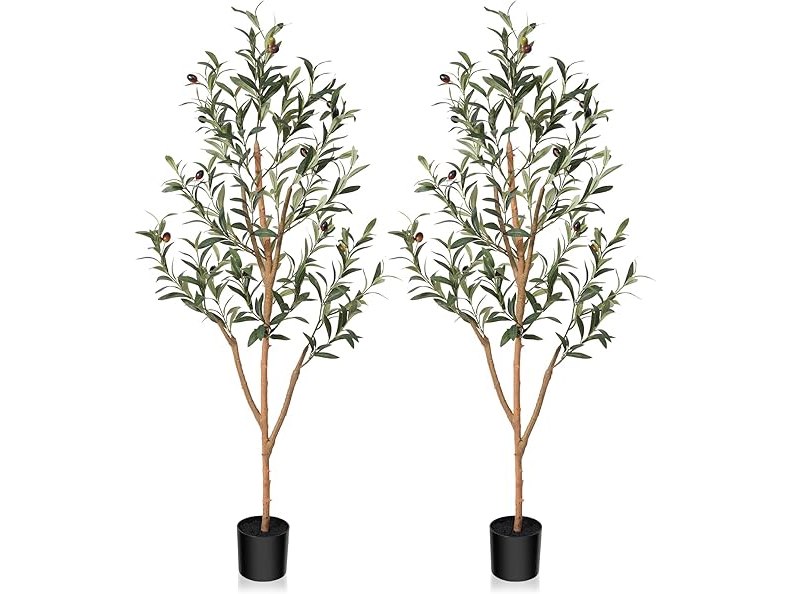 Ongeopend, in seal, Kazeila Kunstolijfboom, 120 cm grote kunstplant voor binnen met fruit, olijfplant van imitatiezijde in pot voor woondecoratie (2 stuks), B0BKRFZ6SR