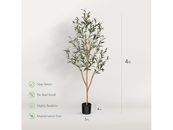 Ongeopend, in seal, Kazeila Kunstolijfboom, 120 cm grote kunstplant voor binnen met fruit, olijfplant van imitatiezijde in pot voor woondecoratie (2 stuks), B0BKRFZ6SR