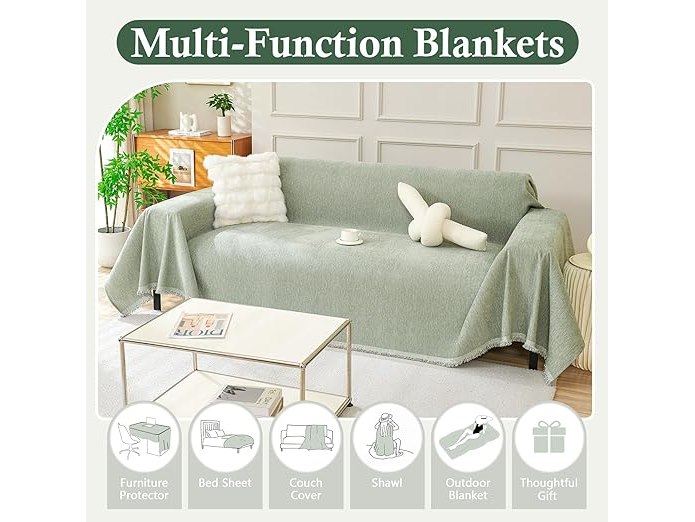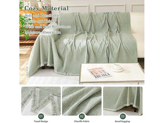 Ongeopend, in seal, TAOTAOGO Bankhoes voor 2-3 zits bank, Wasbare chenille bankhoes met franjes, Voor L-vormige hoekbank, Het hele jaar te gebruiken, F Groen 180x300 cm, B0DSV33Q5K