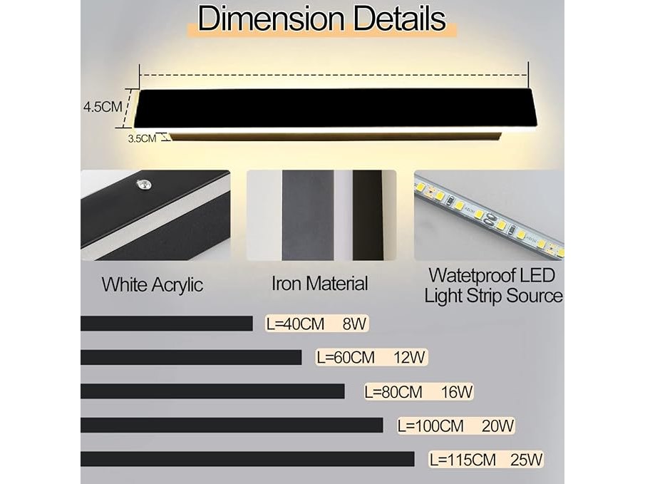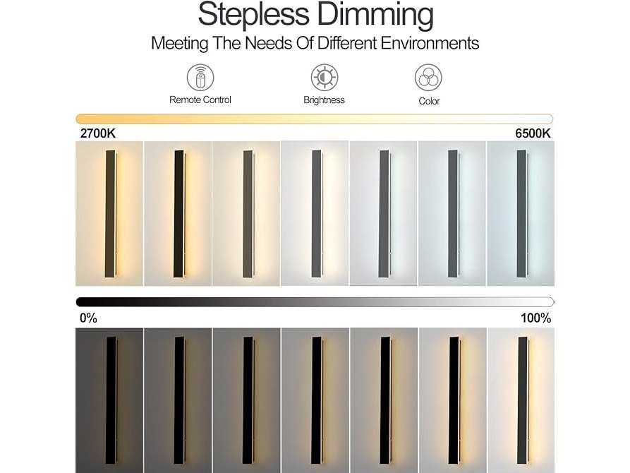 Ongebruikt, getest en werkend, ok, Wandlamp buiten, dimbare buitenwandlampen, LED-wandlamp met afstandsbediening, zwart, acryl buitenlamp voor villa, tuin, gang, buitenbalkon, 100 cm,B0C14TPDN9