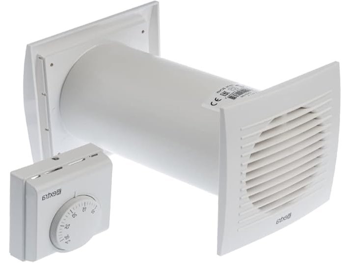 Ongebruikt, getest en werkend, Ø 100mm Warmtewisselaar met Thermostaat - Warmteverdeelkit voor Wandmontage - Wit Kunststof, B07TG1WR4C