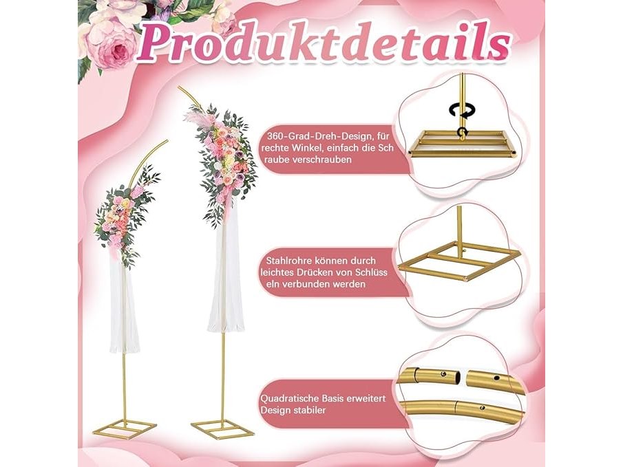 Ongebruikt, volledig, ok, VINCIGANT Bruiloftsboog, goud, metaal, bruiloft met basis voor verjaardagen, feesten, banket decoraties,B0CQSBZPW7