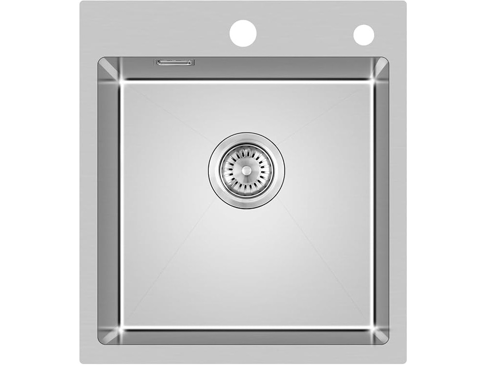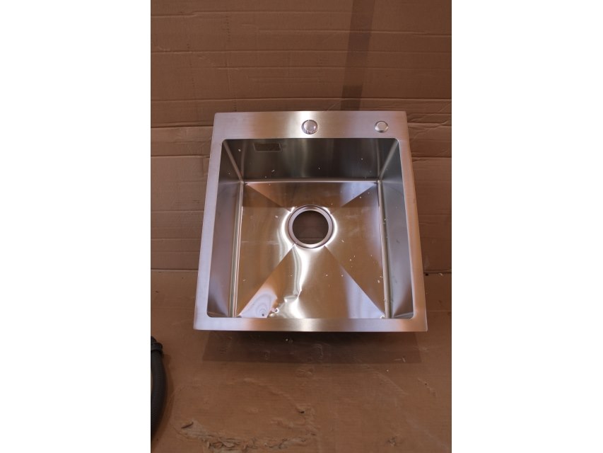 Lichte gebruikssporen, volledig, ok, lichte beschadiging aan binnenkant (zie foto's), KINKIBOS Spoelbak roestvrij staal, 45 x 50 cm, inbouwspoelbak met kraangat en afvoergarnituur en overloop, keukenspoelbak, 1 wasbak, rechthoekig, spoelbak keuken voor 45 cm onderkast, B0C99LDS6Y