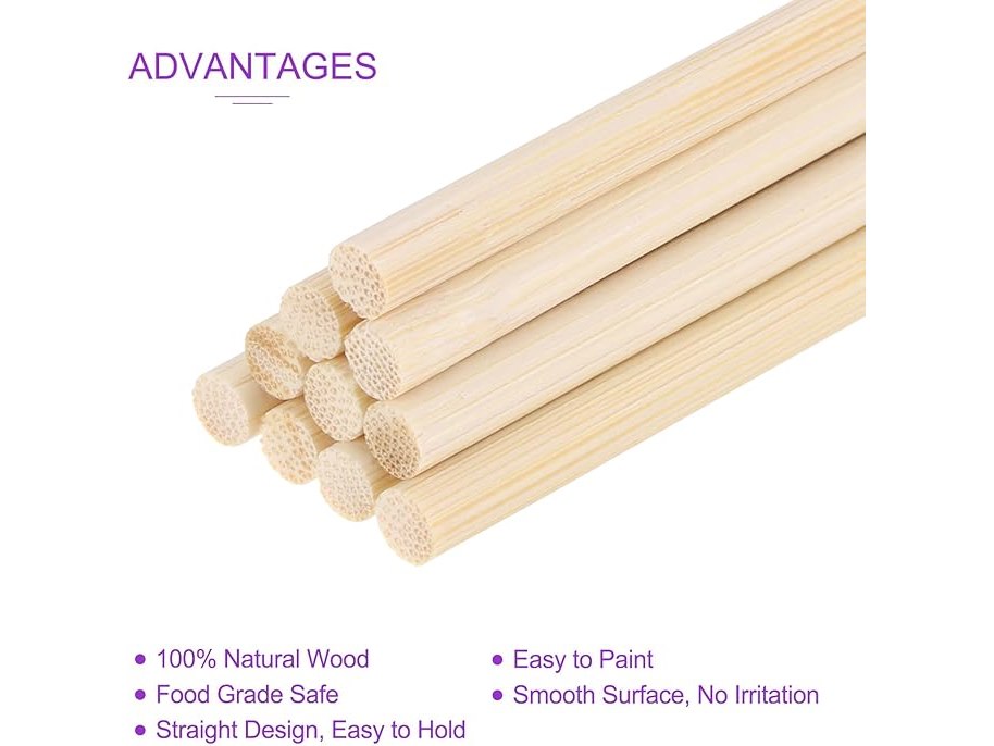 Ongeopend, in seal, DMiotech 50 stuks 6 mm x 150 mm houten deuvels, onafgewerkt, natuurlijke stokjes, houten knutselstokjes voor huisdecoratieprojecten en het maken van doe-het-zelf-knutselwerkjes, houtkleur, B0D6RXBHKD