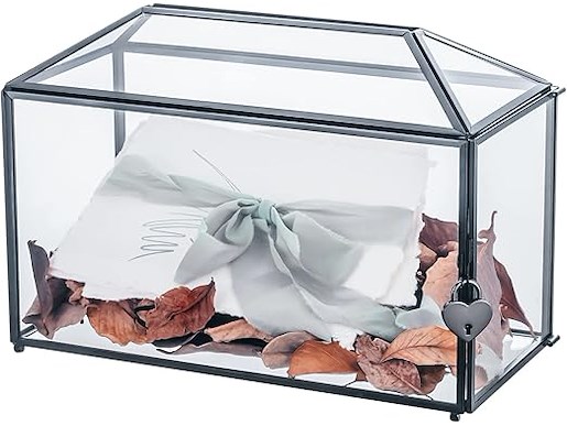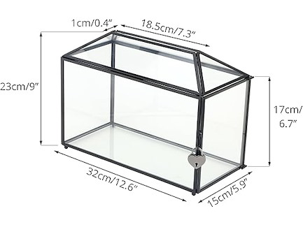 Ongebruikt, volledig, ok, NCYP 32 x 15 x 23 cm grote glazen kaartendoos voor bruiloft met sleuf en hartslot, messing zwarte geometrische terrariumdoos, B09WHC12PY