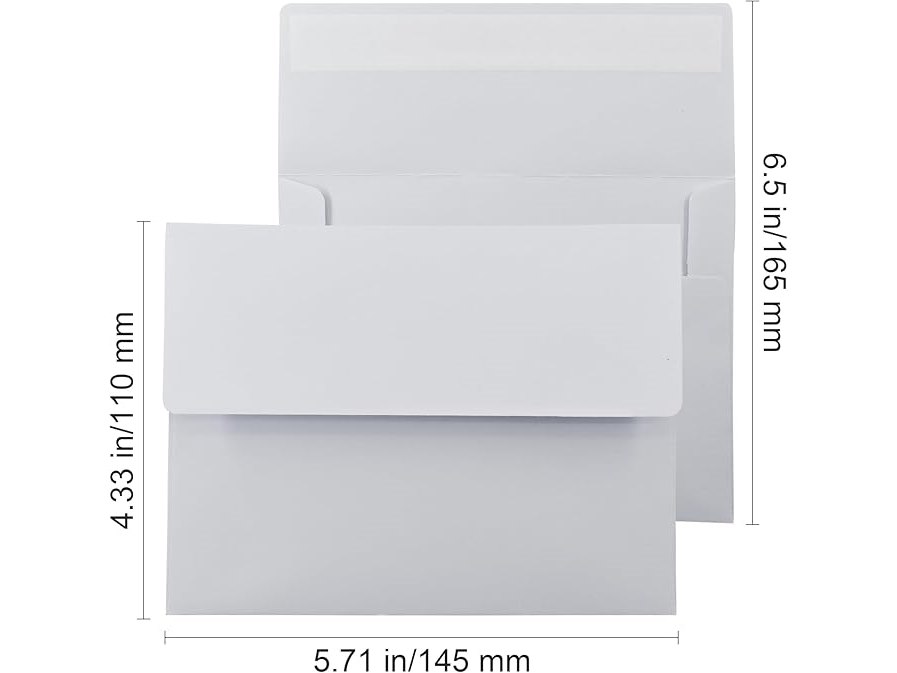 Ongeopend, VANRA 150 stuks A2 uitnodigingsenveloppen voor wenskaarten van 4,25 x 5,5 inch, zelfklevende witte A2 enveloppen met gegomde klep voor trouwuitnodigingen, B0CQZQCDNH
