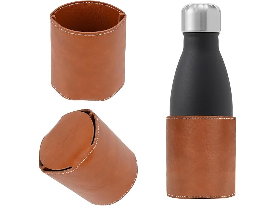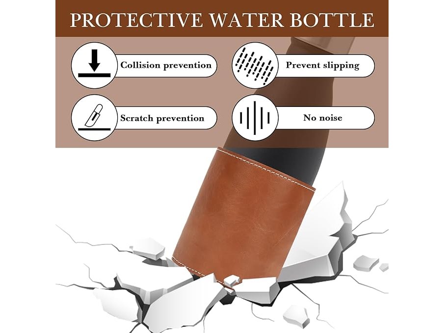 Ongeopend, Linkidea 2-delige waterflesbeschermer (bootje) compatibel met S'well ORIGINAL 9 oz, BJPKPK 12 oz, MIRA Cascade 12oz colaflessen, veganistisch leren bodembeschermer (bruin), B0F4WZZPKH