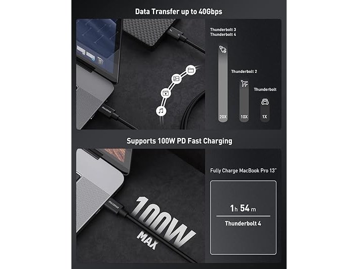 2x thunderbolt 4-kabel (usb-c) 0,8m