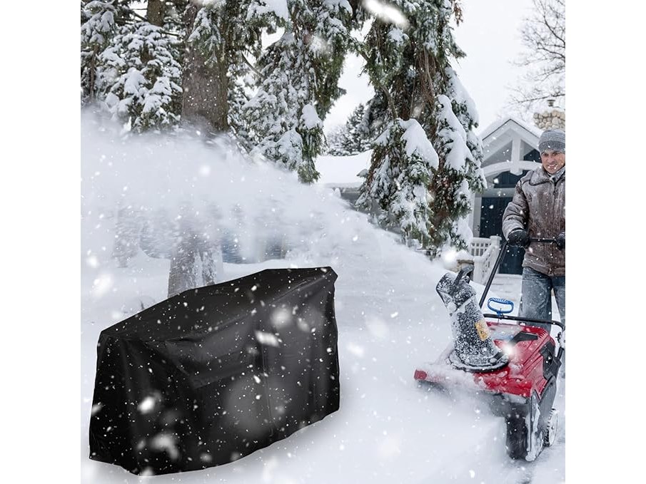 Ongeopend, Sneeuwblazerhoes 147x132x84cm, zwarte sneeuwblazerhoes van 600D Oxford-stof, waterdicht, zwaar uitgevoerd, beschermschild voor sneeuwblazers en grasmaaiers met trekkoord en winddichte gesp, B0CLTYVJQV