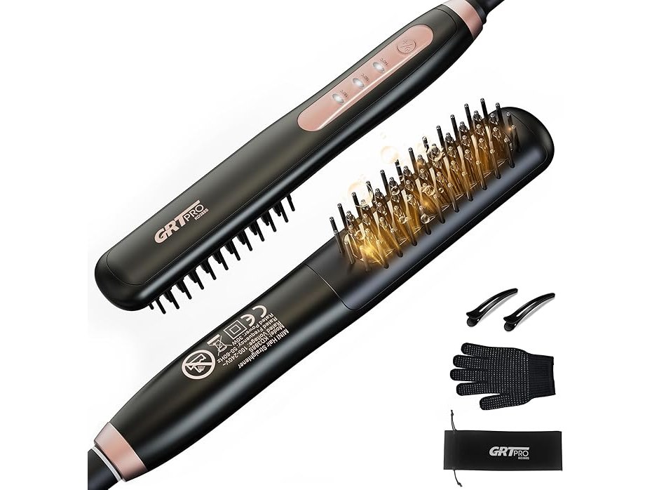 Mini stijltangborstel, keramische stijltang en haarborstel, 2-in-1