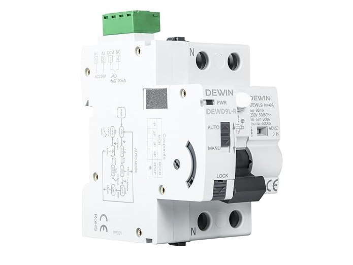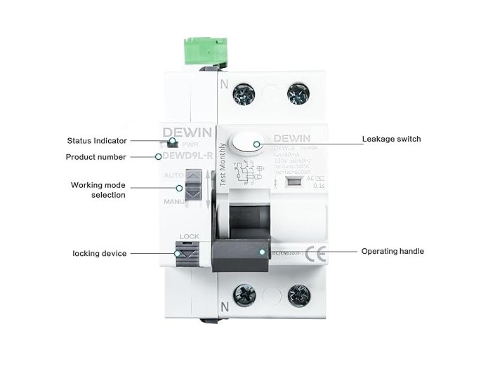 Ongebruikt, ok, DEWIN Aardlekschakelaar, GRD9L-R RCCB automatische uitschakeling elektrische stroomonderbreker intelligente stroomonderbreker type AC 2P 40A 30mA, B0CDGX3VJW