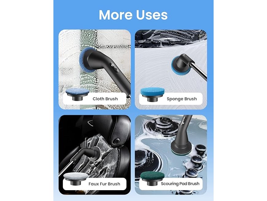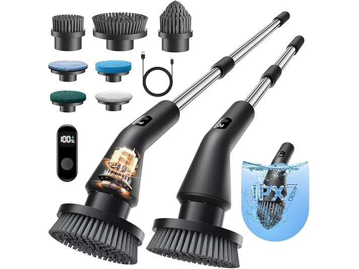Ongebruikt, getest en werkend, ok, Leebein Elektrische Draaiborstel, Geüpgradede Reinigingsborstel, IPX7 Waterdichte borstel met 7 Borstelkoppen, Uittrekbare Lange Steel en 2 Snelheden voor Badkamer, Vloer en Keuken, B0F9YFDW32