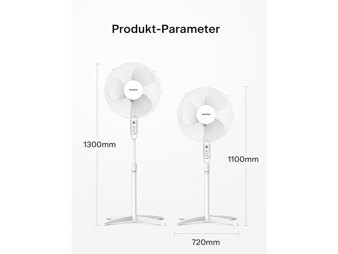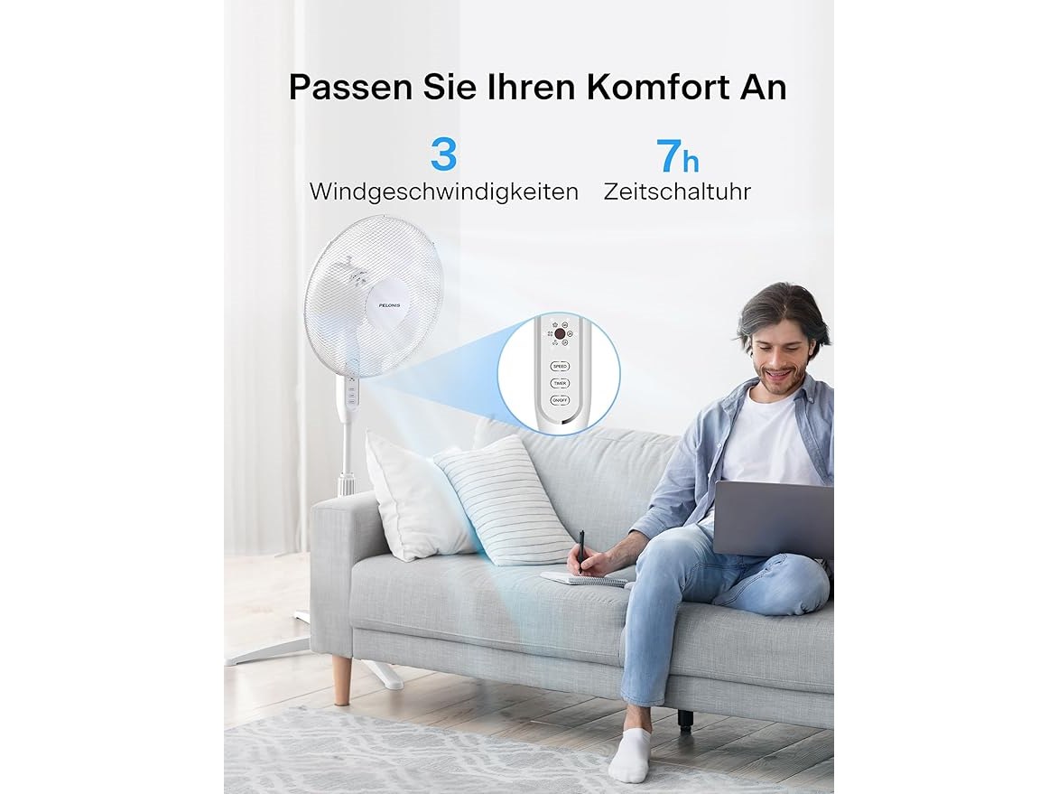 Ongeopend, Pelonis vloerventilator met afstandsbediening, 3 bladen met een diameter van 40 cm, 3 snelheden, 7-uurs timer, 90° zwenking, in hoogte verstelbaar van 110 tot 130 cm, B0CMZYWLZS