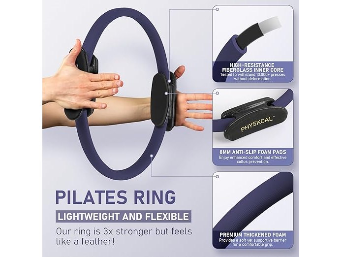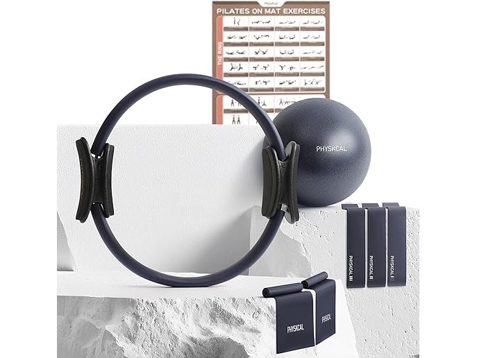 Minieme gebruikssporen, compleet, ok, Pilatesset, 38 cm Pilatesring met 1 corebal, 3 weerstandsbanden en 2 flexibele banden. Essentiële set voor Pilates thuis op de mat, B0FC68LMBK