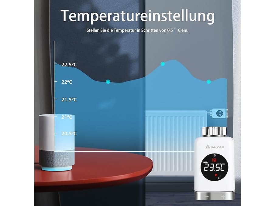 Ongebruikt, werkt, compleet; SALCAR WiFi Thermostaat TRV801W Thermostaatkop Compatibel met Amazon Alexa & Google Assistant Programmeerbare Tuya Thermostaat Radiator, geen gateway nodig, B0CDZPB8RZ