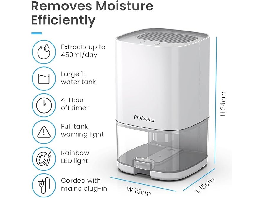 Pro breeze 1000ml luchtontvochtiger