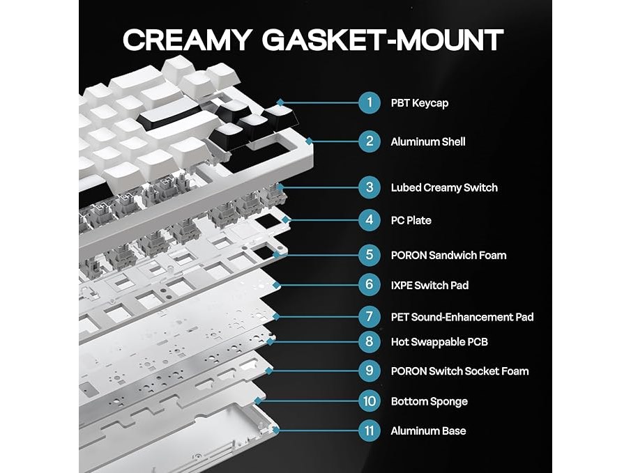 Ongebruikt, ok, EPOMAKER Galaxy68 Draadloos Mechanisch Toetsenbord, Aluminium, 6000mAh, QMK/VIA, RGB Zij-/Achterverlichting, 65% Gaming Toetsenbord, Hot-Swap, Crème (Wit, Marmerwitte Switches), B0FBG4BRH3