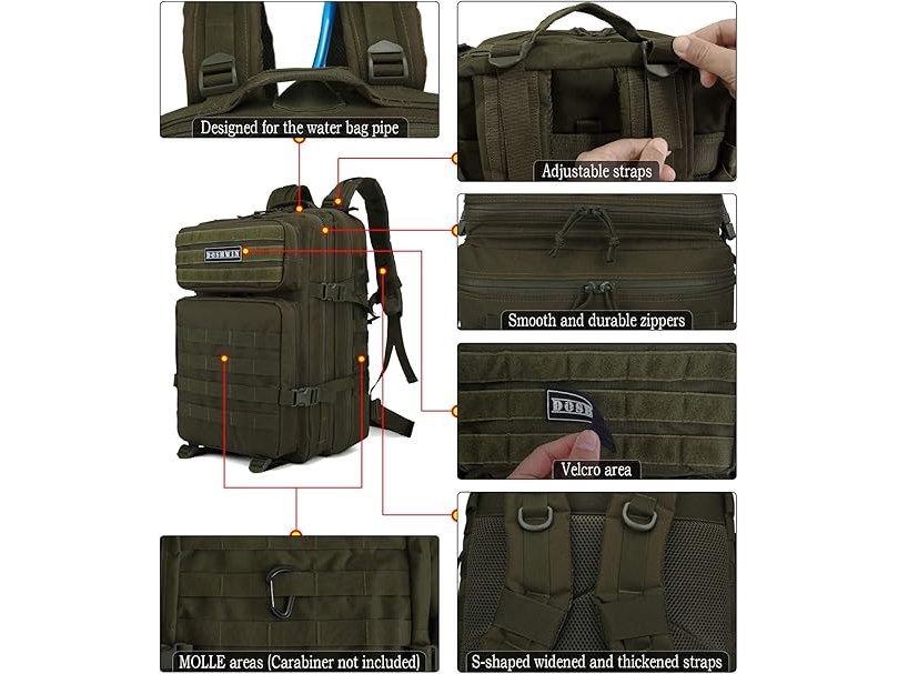 Ongebruikt, ok, 40L militaire rugzak, tactische legeraanvalsrugzak, Molle camouflage wandelrugzak, rugzakken voor kamperen, trekken, reizen en wandelen, B0829Q7QBY