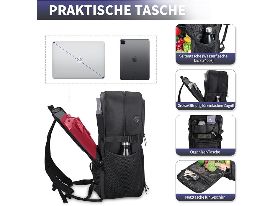 Ongebruikt, ok, BERTASCHE Lunchrugzak, rugzak voor 15,6 inch laptops met lunchvak, laptoprugzak, werktas, picknickrugzak, dagrugzak, voor mannen en vrouwen, voor zakelijk gebruik, universiteit, kantoor, kamperen, picknicken, reizen, wandelen, B0DPPLD588