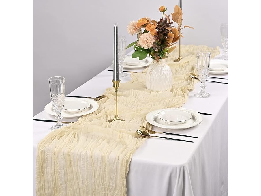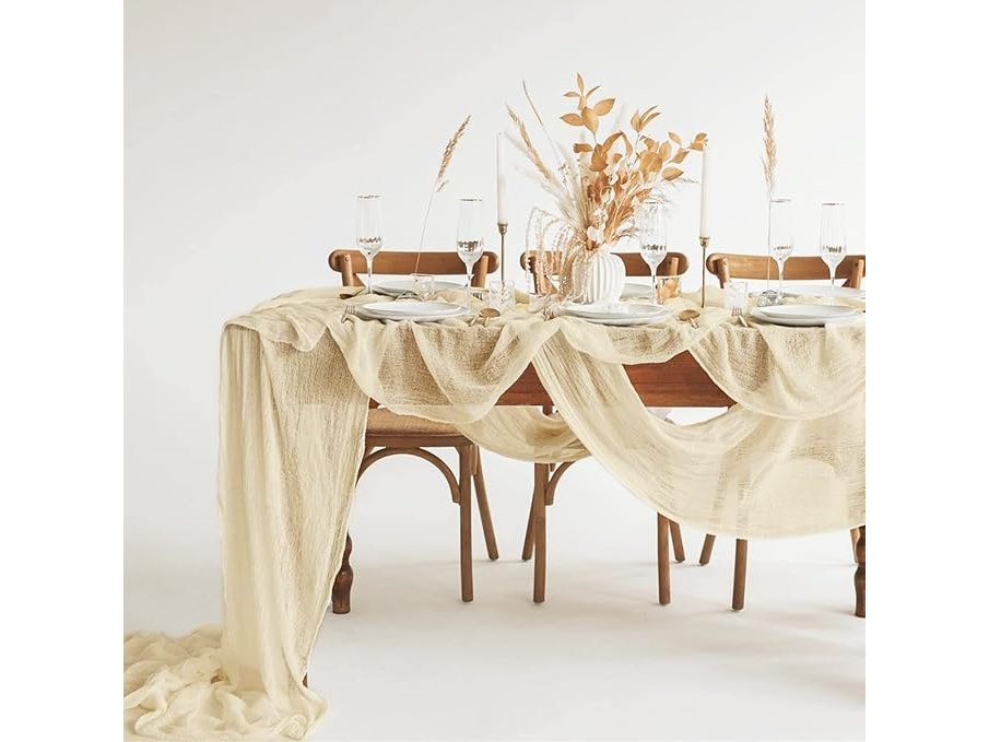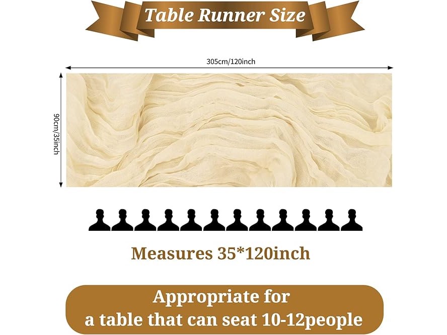 Ongebruikt, ok, 12-delige set tafellopers van kaasdoek, beige rustieke tafelloper van gaas, 35"x120" tafelloper van kaasdoek en gaas, boho tafelloper van kaasdoek voor bruiloft, babyshower of verjaardagsfeestdecoratie (beige), B0BZD2LYTZ