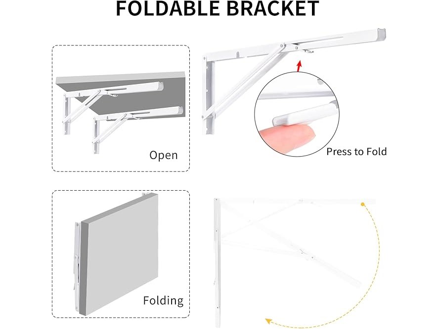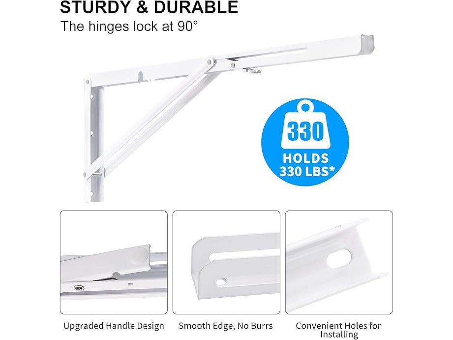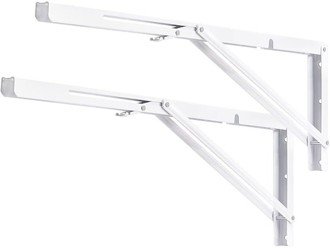 Ongebruikt, ok, Yumore opklapbare plankdragers, 61 cm, zware L-vormige beugel voor werkbank, witte opklapbare tafelscharnier voor zelfmontage, maximale belasting 150 kg, set van 2, B0BF3ZP3R2