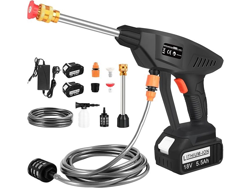 Ongebruikt, getest en werkend, ASUNCELL Accu-hogedrukreiniger met 2 x 5500 mAh accu's, multifunctionele sproeikop, draadloze draagbare hogedrukreiniger, Hydroblast hogedrukreiniger voor auto's, gazon, tuin en zwembaden, B0DZ5NXYGX