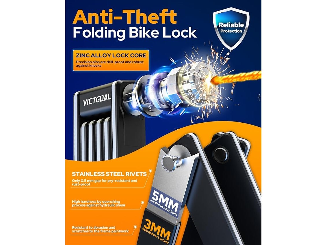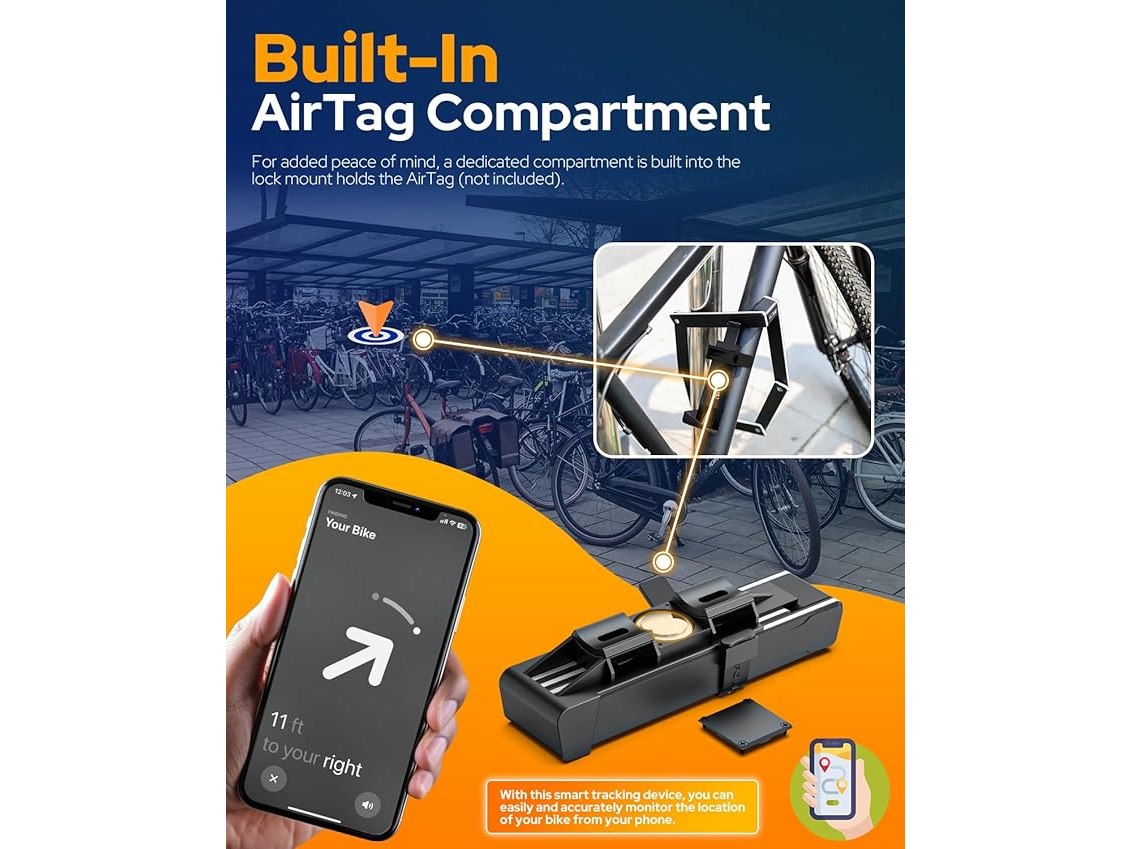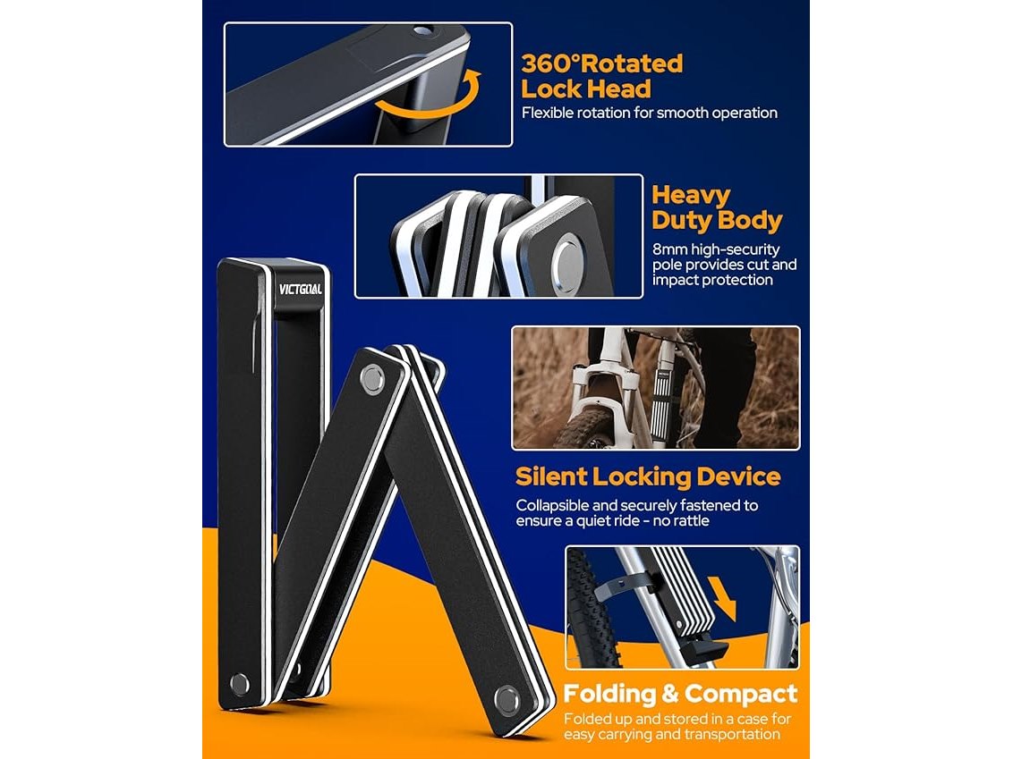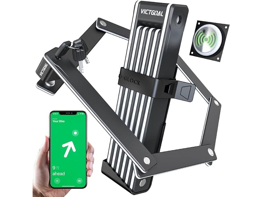 Ongebruikt, ok, VICTGOAL Vouwfietsslot met verborgen houder voor AirTag, Heavy Duty fietssloten met sleutels, opvouwbaar fietsslot met houder voor fiets e-bike scooter, B0F4XHYYWT
