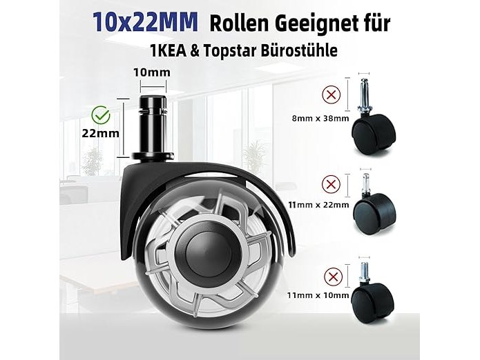 Ongebruikt, ok, Sytopia Bureaustoelwieltjes 2 inch – Robuuste en stille vervangingswieltjes met soepele rollers voor tapijt en hardhouten vloeren, universele maat 10x22 mm, set van 5, B0CM3M9VBR
