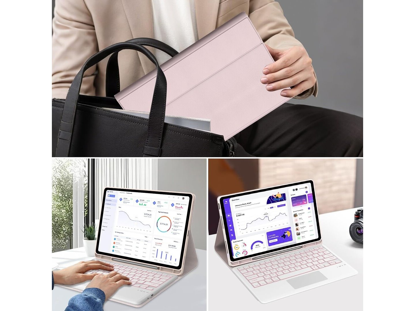 Ongeopend, ok, Iveoppe Beschermhoes voor toetsenbord Lenovo Tab P12 12,7 inch 2023, toetsenbordhoes met 7 kleuren, achtergrondverlichting, AZERTY, Frans, Bluetooth-lay-out, draadloos, afneembaar, B0DZNCK92G