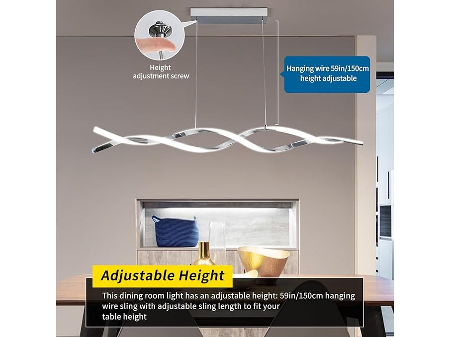 Minieme gebruikssporen, getest en werkend, Mikeru Led-hanglampen, 120 cm, in hoogte verstelbaar, chroom, moderne hanglamp, eettafel, hanglamp, dimbaar, 10% tot 100% in hoogte verstelbaar, voor woonkamer, keuken, B0DCNPNL1T