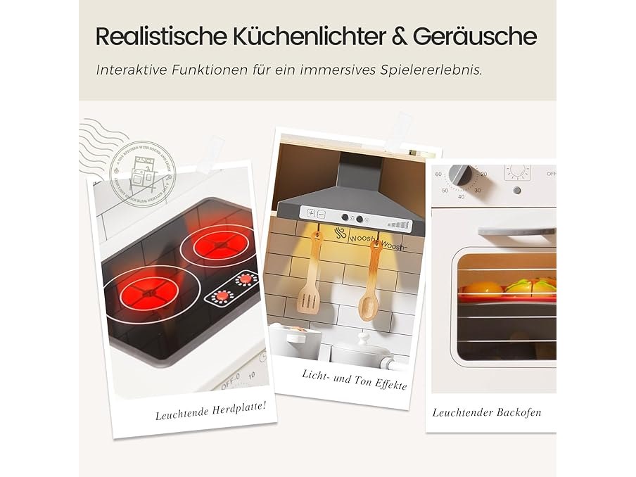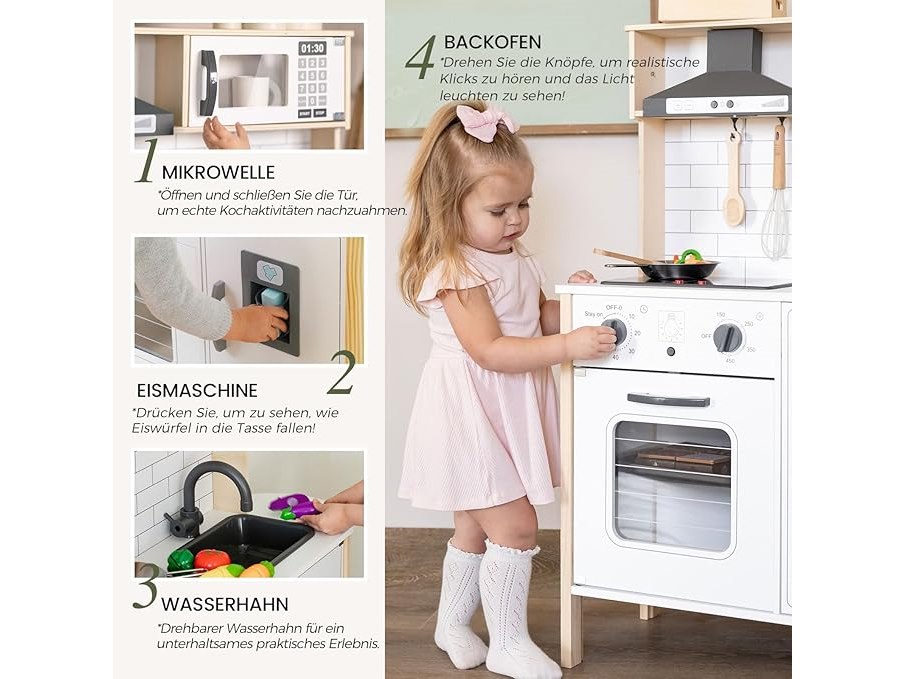 Ongeopend, in seal, Tiny Land Kinderkeuken met 18 speelgoedartikelen, etenswaren en kookgerei. Houten speelset voor peuters, waarin ze als chef-kok kunnen spelen, met realistische licht- en geluidseffecten, B08SPY6SRG
