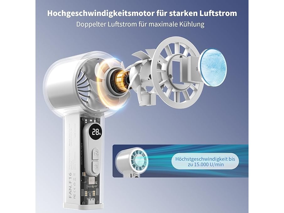 Ongeopend, Handventilator met 5000 mAh accu, 6 turbostanden, transparante behuizing, ideaal voor op reis, concerten en buitenactiviteiten, wit, B0F1MJD4S6