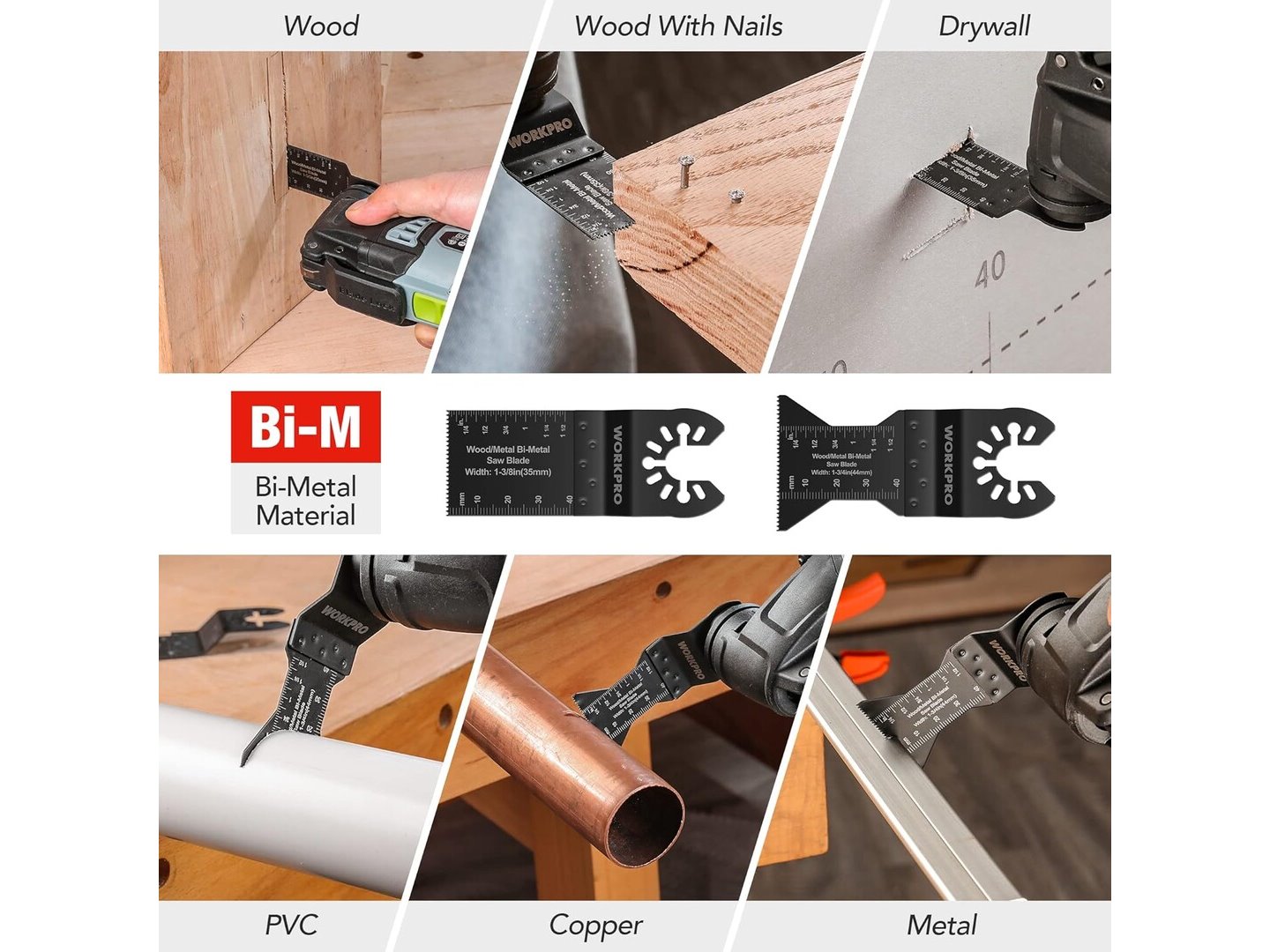 Ongebruikt, volledig, ok, WORKPRO Multifunctionele gereedschapsschijven 22 stuks, Bi-metaal materiaal oscillerende gereedschapsschijven, oscillerende accessoires voor metaal, hout, kunststof, gipsplaten, geschikt voor BOSCH, FEIN, Milwaukee, B0B41CJCZF