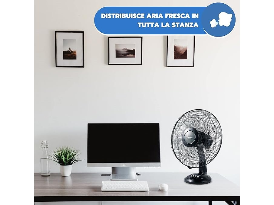Ongebruikt, getest en werkend, volledig, verpakking licht beschadigd, ok, ARDES AR5S41 Ardes tafelventilator, 40 cm, 5 oscillerende rotorbladen, volledig zwart, Ardes 3 snelheden, stil model,B0797KGKKF