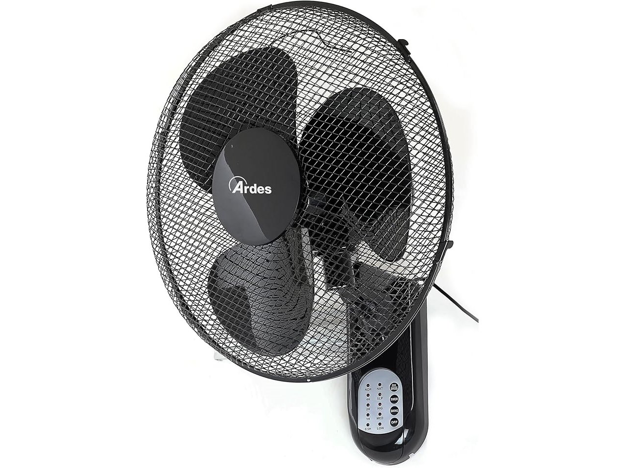 Gebruiksporen, getest en werkend,originele verpakking ontbreekt ,ok, ARDES - Wandventilator met 3 draaibare bladen (40 cm), afstandsbediening, automatische oscillatie, instelbare timer en 3 snelheden, zwarte wandventilator AR5W40R,B07P5TM4WR