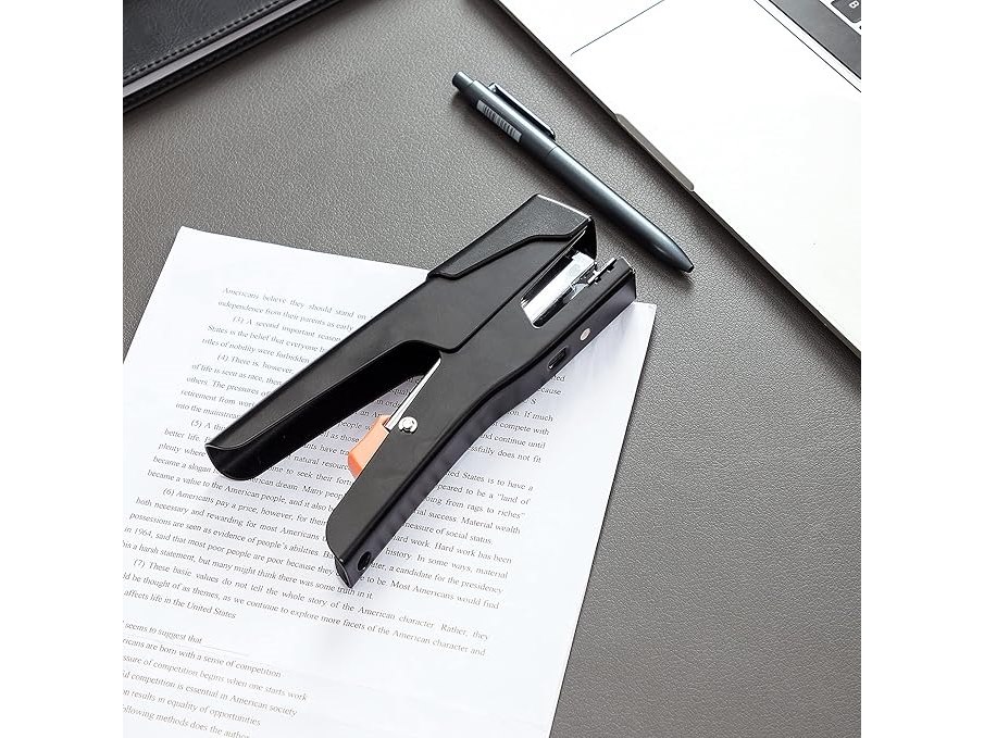 Minieme gebruikssporen, getest en werkend,verpakking ontbreekt, ok, Amazon Basics Handnietmachine, moeiteloos nieten, niettang, 25 vellen, zwart,B086NBPS94