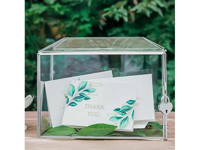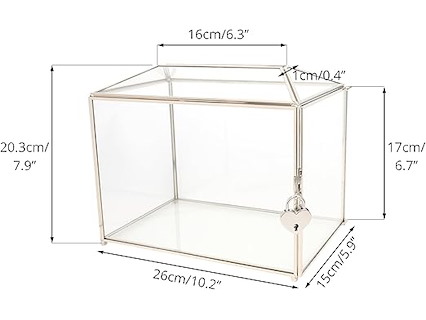Ongebruikt, ok, NCYP Zilveren glazen kaartendoos met sleuf en slot voor bruiloft, verjaardag, feest - 26 x 15 x 20,3 cm handgemaakte doorzichtige geometrische glazen kaarthouder - woondecoratie vetplanten terrarium, B0BJQ2R7V4