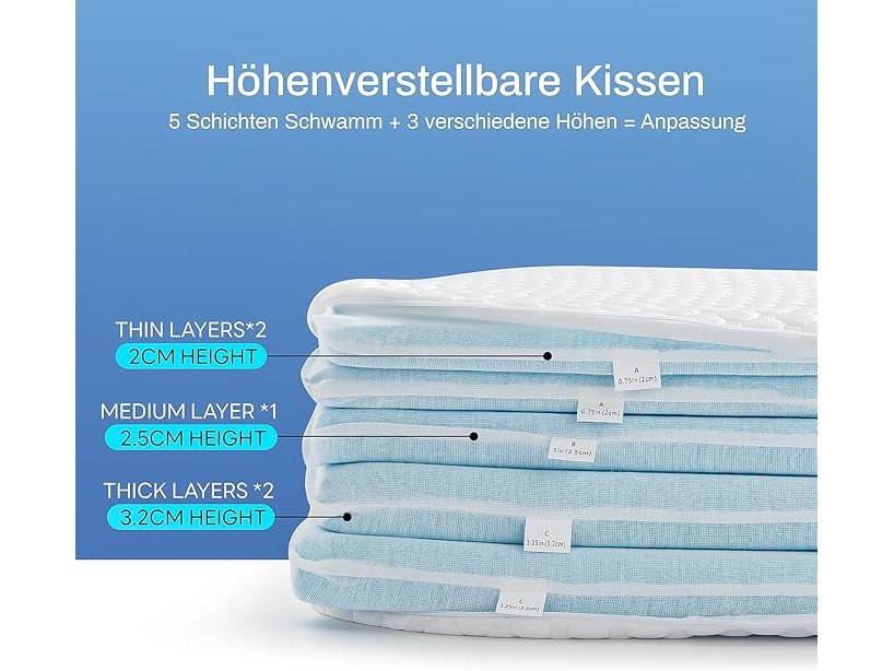 Ongebruikt, volledig, ok, MetersGod Memory Foam Kussen, in hoogte verstelbaar, ergonomisch nekkussen voor ondersteuning en tegen snurken, met wasbare hoes, voor zij- en rugslapers, wit, 60 x 40 cm,B0D7Z3JNCS
