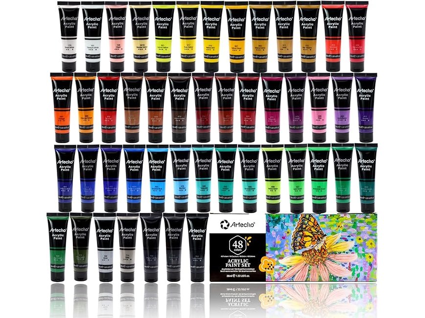 Ongebruikt, volledig, ok, Artecho Acrylverfset, 48 x 35 ml, Acrylverfset, Waterdicht en lichtecht, Sneldrogend, Ideaal voor Canvas, Papier, Stoffen, Cadeau voor Kerst en andere Feestdagen,B0CYK5SJ3X