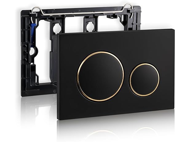 Ongebruikt, volledig,verpakking ontbreekt,ok, Empyreal Bedieningsplaat voor Toiletreservoir, Onderdelen voor oud model, Geschikt en compatibel met Geberit Sigma 01 Bedieningsplaat 115770115 met Dubbele Spoeling, 1 stuk (Zwart & Gouden Cirkels),B0D6377KQ9