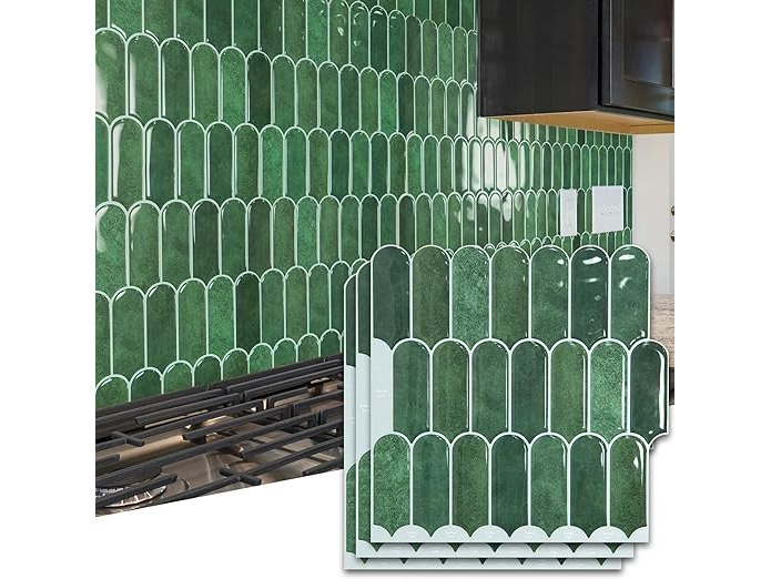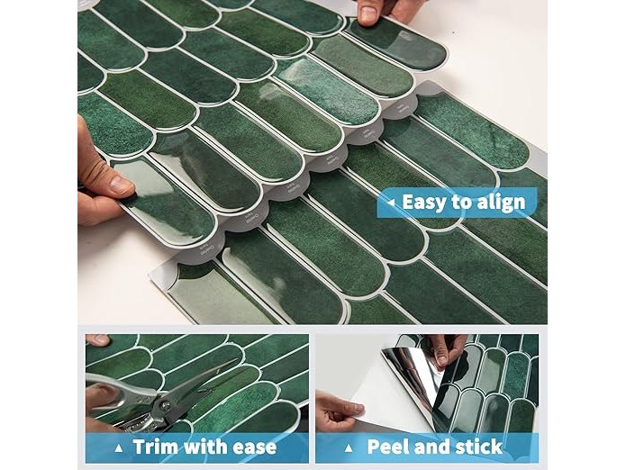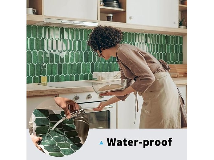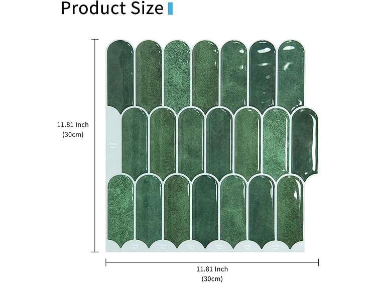 Ongebruikt, volledig, ok, Art3d zelfklevende wandtegels, vinyl, om af te pellen en op te plakken, voor keukenachterwand, badkamer, wasruimte, 30 x 30 cm, groen, 10 vellen, B0CSYN7V3C