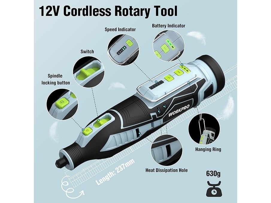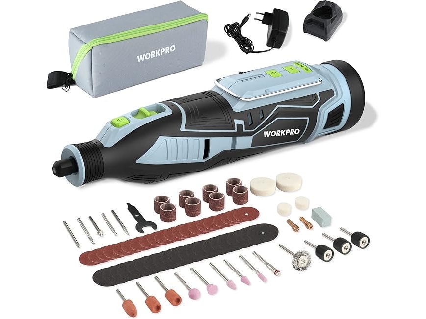 Ongebruikt, getest en werkend, volledig, ok, Workpro Accugereedschap, multifunctioneel, 12 V, draaigereedschapset met 114 accessoires, 5 variabele snelheidsinstellingen 7500 - 32000 tpm, voor slijpen, snijden, boren, polijsten, reinigen en graveren,B09B3JVC9Q