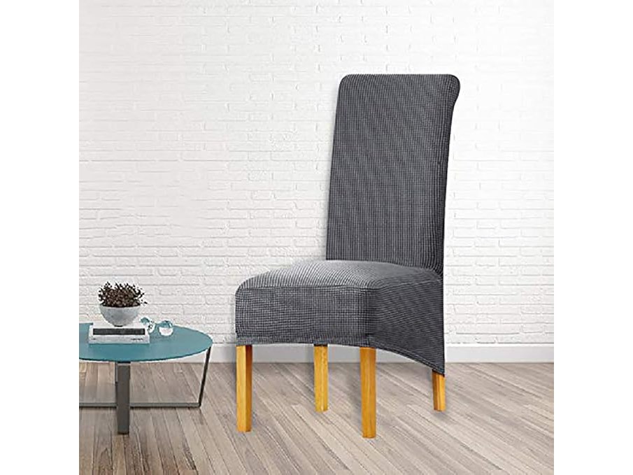 Ongebruikt, originele verpakking ontbreekt, ok, Lansheng XL Stoelhoezen voor Eetkamerstoelen, Rekbare Stoelhoezen met Elastiek voor Eetkamer, Bruiloft, Banket, Feestdecoratie, 4 Stuks, Donkergrijs 1,B081XC51H5