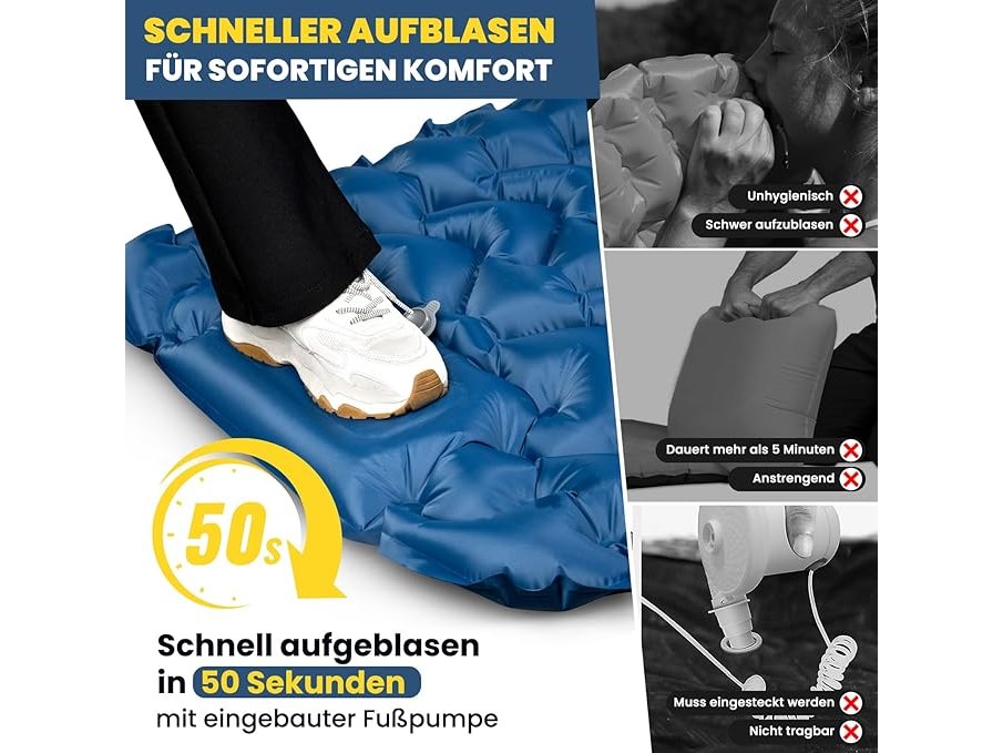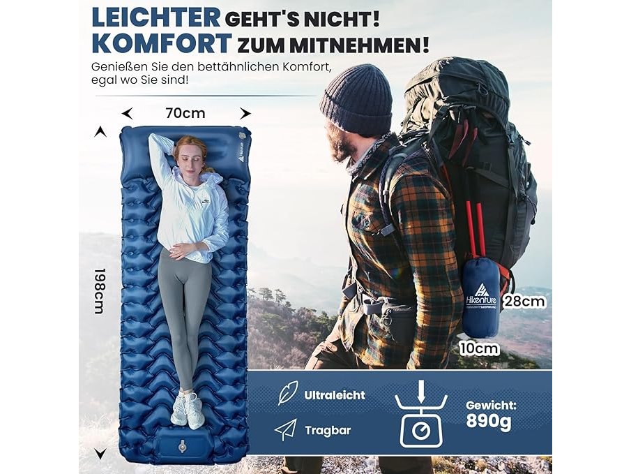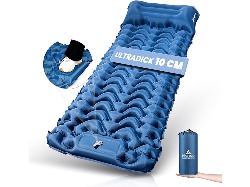 Ongebruikt, ok, Hikenture Isomat, zelfopblazend, 10 cm, campingluchtmatras, isolerende campingmat, kleine pakmaat, opblaasbare slaapmat met voetpomp voor kamperen, outdoor, wandelen, tent, donkerblauw A2,B0CQTC9XXY