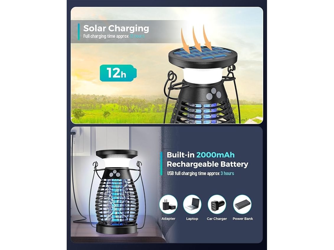 Ongebruikt, getest en werkend, originele verpakking ontbreekt, ok, Insectenverdelger, elektrische vliegenval, 4000 mAh, 4200 V, elektrische vliegenval, anti-muggenlamp, insectenval voor buiten, insectenval, muggenbescherming, voor binnen- en buitengebruik (zwart),B0FHB7BT74