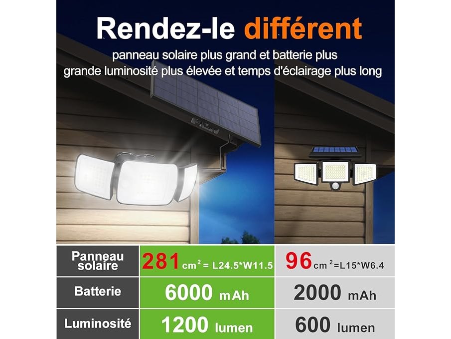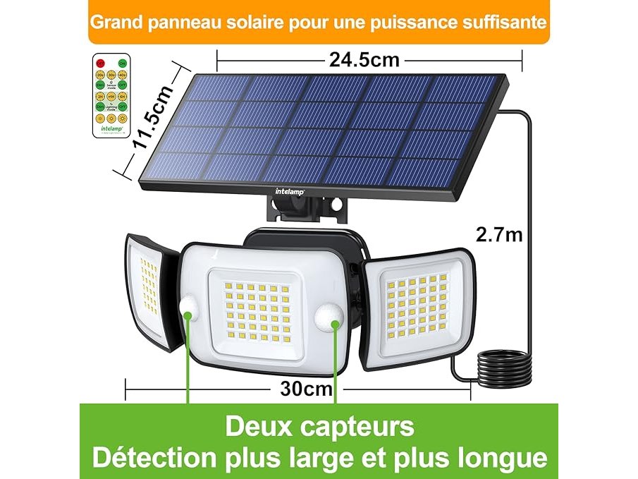 Ongebruikt, getest en werkend, volledig, ok, Intelamp Zonnelampen voor buiten met afstandsbediening, 6000 mAh, 1200 lm, zonnelampen met bewegingssensor, onafhankelijk paneel, 4 modi, zonnelampen voor buiten, met 3 m kabel,B0C7M8P3BZ