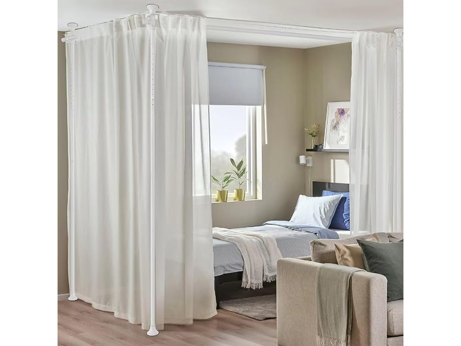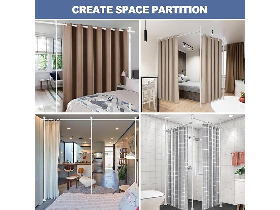 Ongebruikt, volledig, exclusief gordijnen, ok, Kamerverdeler, boren niet nodig, gordijnroede, wandverdeler voor kamerverdeler, verstelbaar 280 cm x 317 cm (B x H x H), robuuste spanstang van vloer tot plafond, tijdelijke privacy-afscheiding,B0CW5ZNMW5