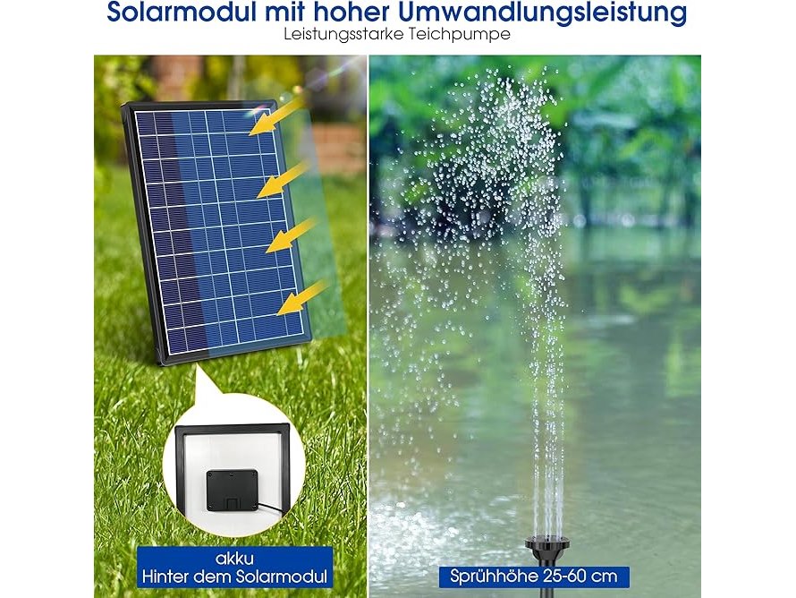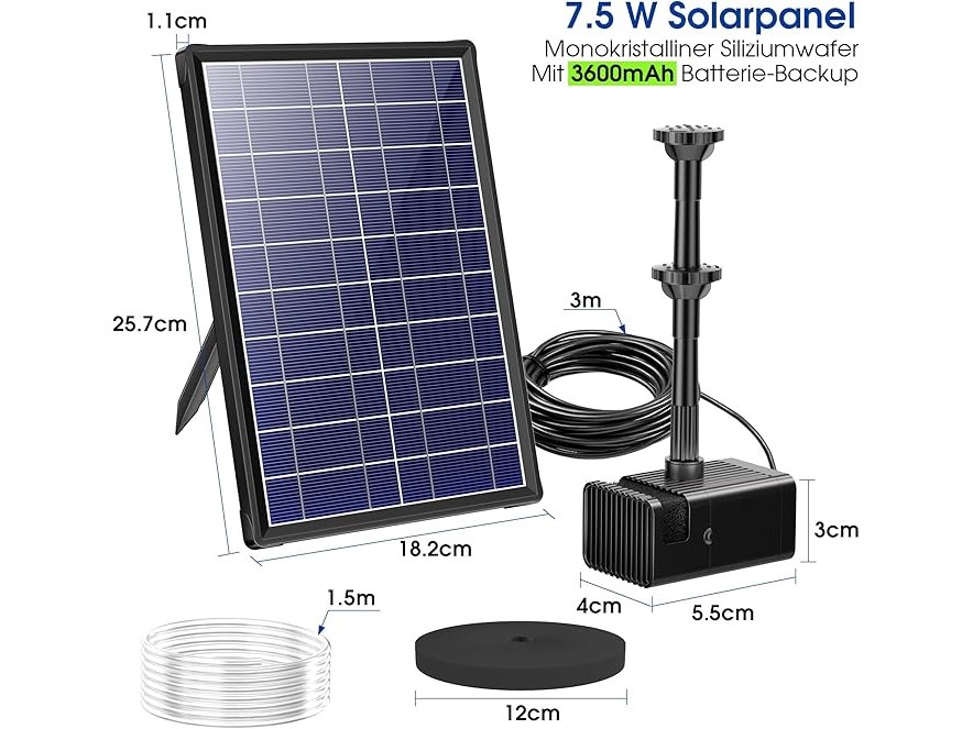 Ongebruikt, ok, werkt, Biling Solar Fontein, Solar Fontein met Batterij, 7,5W Solar Vijverpomp met 3600mAh Vervangende Batterij, Waterpomp met 10 Sproeiers voor Kleine Vijvers, Vogelbadjes en Waterpartijen, B0BRN3YPT3