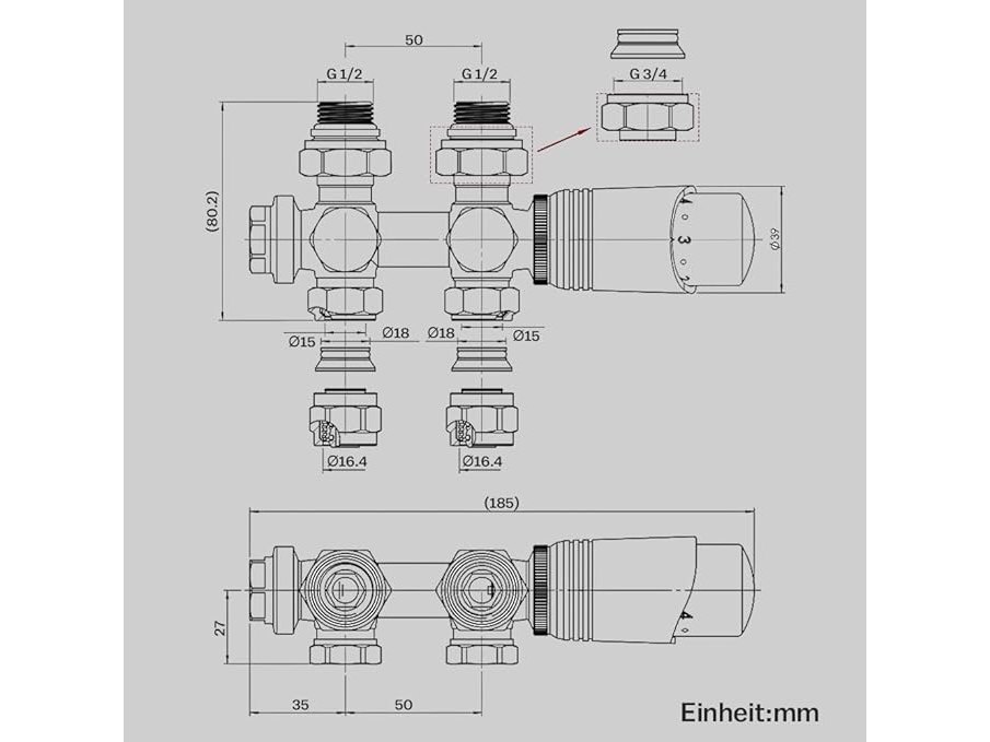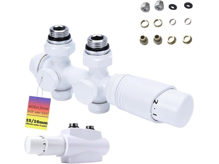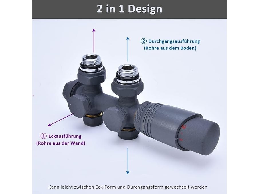 Ongebruikt, ok, compleet, Multiblock thermostaat hoek- en doorlaatvormset aftapblok voor radiatoren, badkamerradiator, aansluitstuk middenconnector, radiatorventiel, ventielarmaturen, messing, G1/2 inch G3/4 inch, B0DFM6NFMR