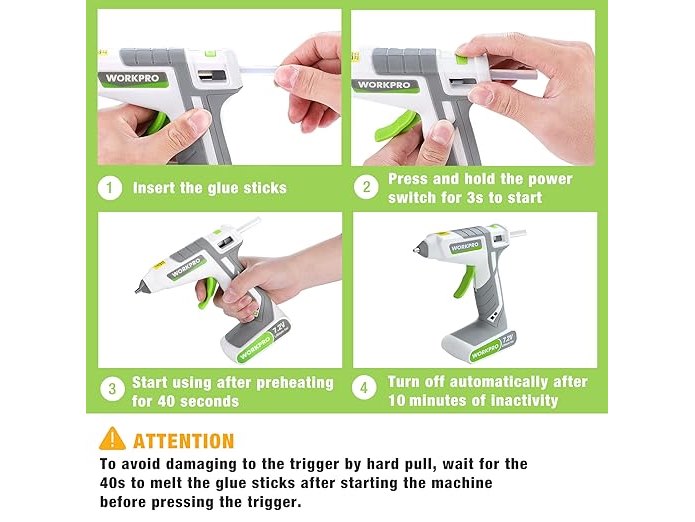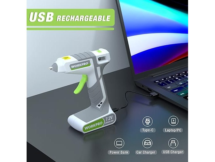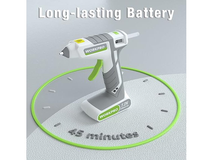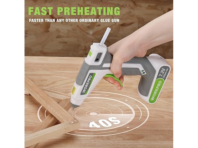 Ongebruikt, getest en werkend, WORKPRO 7,2 V draadloos lijmpistool met 2000 mAh accu en 20 lijmsticks (7 x 100 mm), elektrisch lijmpistool, automatische uitschakeling, snelle opwarmtijd van 40 seconden voor doe-het-zelf, kunst en meer, B0BFR17KQ7